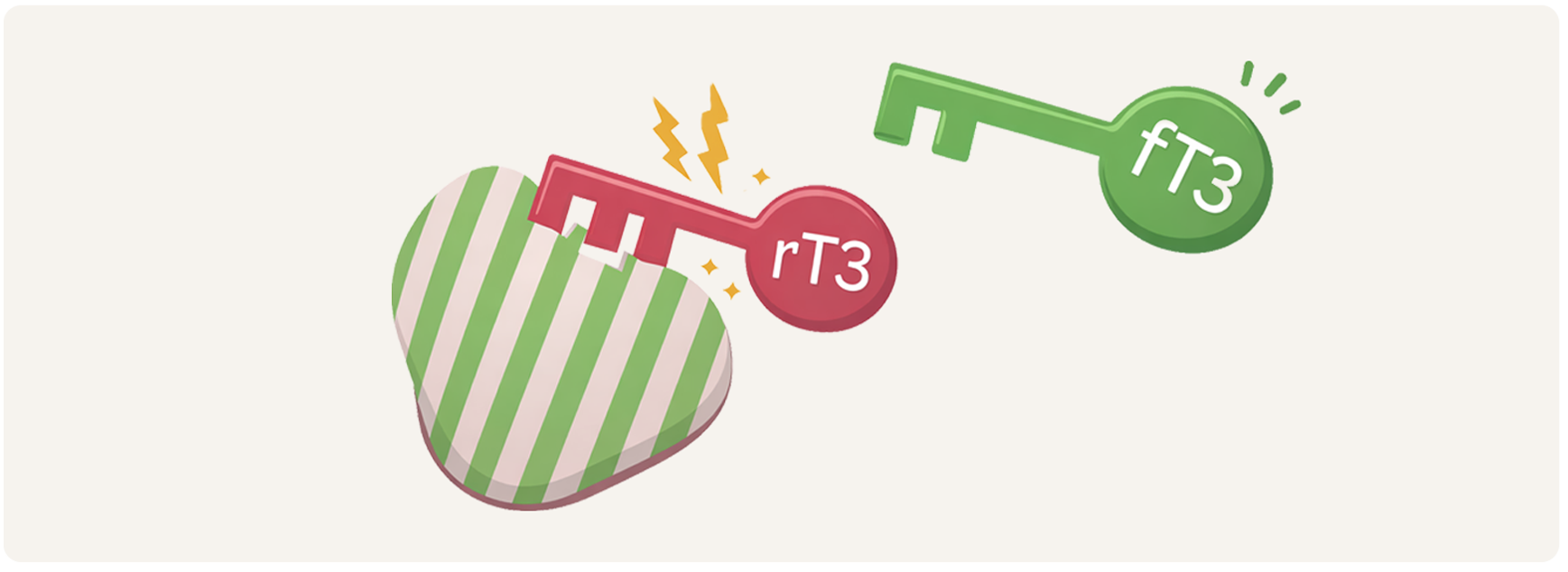 Reverse T3 ist eine inaktive Form, die zwar an die gleichen Rezeptoren binden kann wie T3, aber ohne Wirkung, deine Körperzellen werden nicht aktiviert.