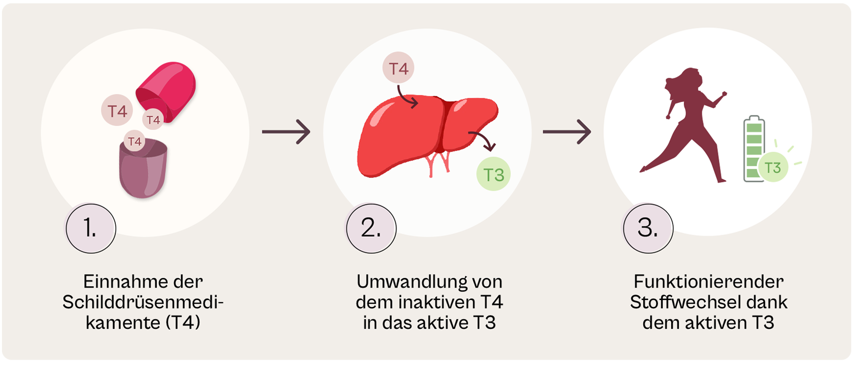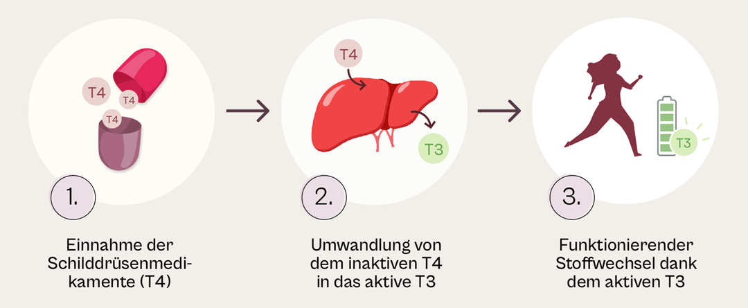 Die Idee dahinter: Dein Körper soll das zugeführte T4 selbstständig in T3 umwandeln, so, wie es auch bei gesunden Menschen passiert.